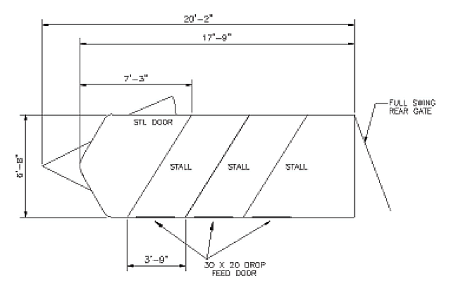 16' long X 6' wide X 7' high - Tack compartment & feed manger - Horse divider in front area - Center divider gate - Combo rear gate