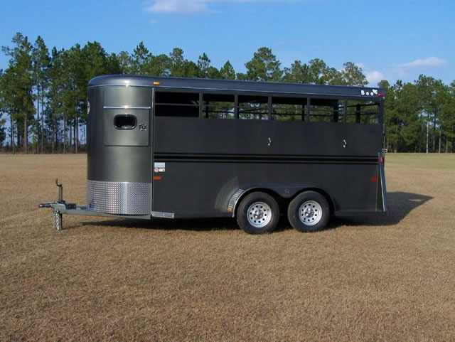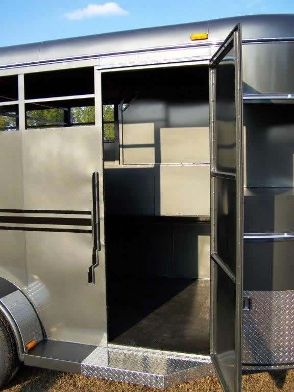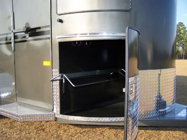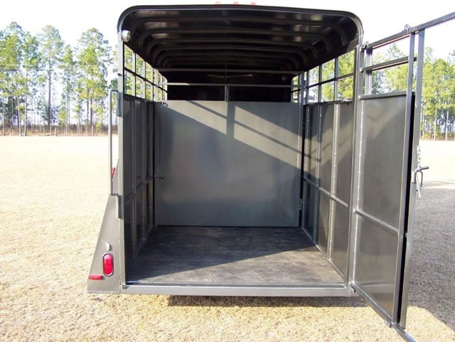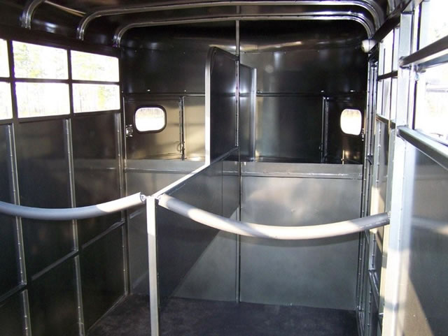 6' wide X 6'6" Tall - Available in 10', 12', 14' & 16' lengths - Tack compartment & feed manger - Horse divider in front area - Center divider gate - Combo rear gate